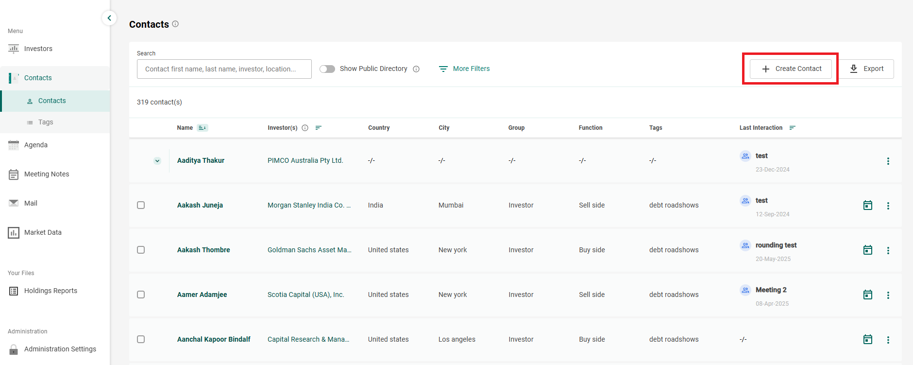 - Go to Contacts and click on the button Create Contact: