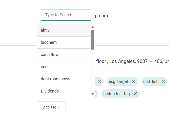 On entering a contact profile, click on “See more Details” on the relevant contact card. You can add a Tag by clicking on “Add Tag”. You can also create a new tag by typing a name.
